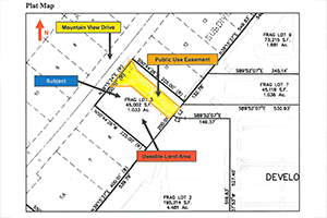 The usable portion of this lot measures approximately 25,300 square feet (.58 acres) on the southerly portion of the site.